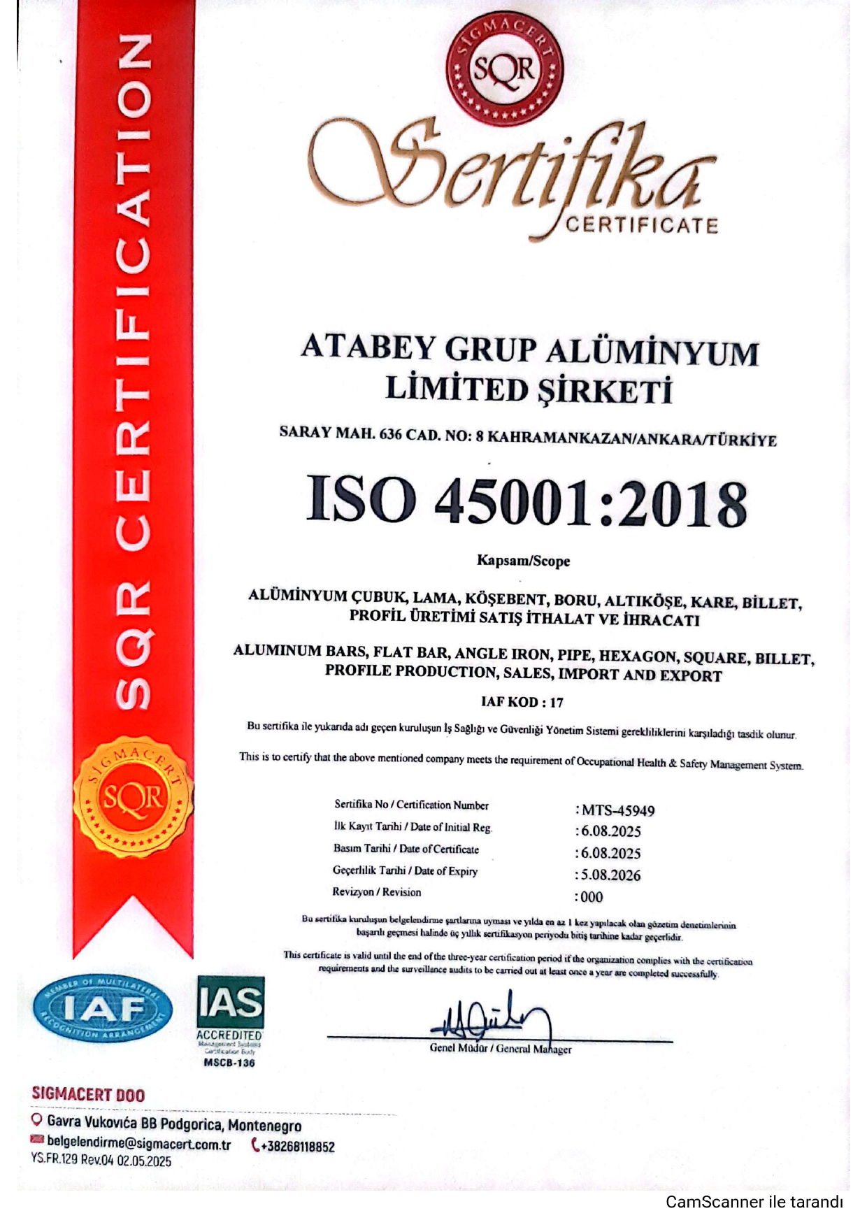 6005 Alüminyum
